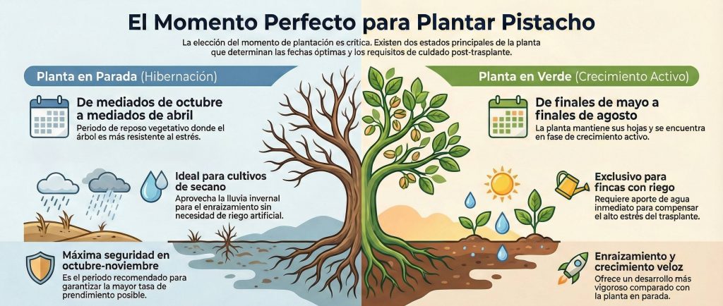 Octubre-marzo para máxima seguridad. Mayo-agosto si tienes riego instalado.