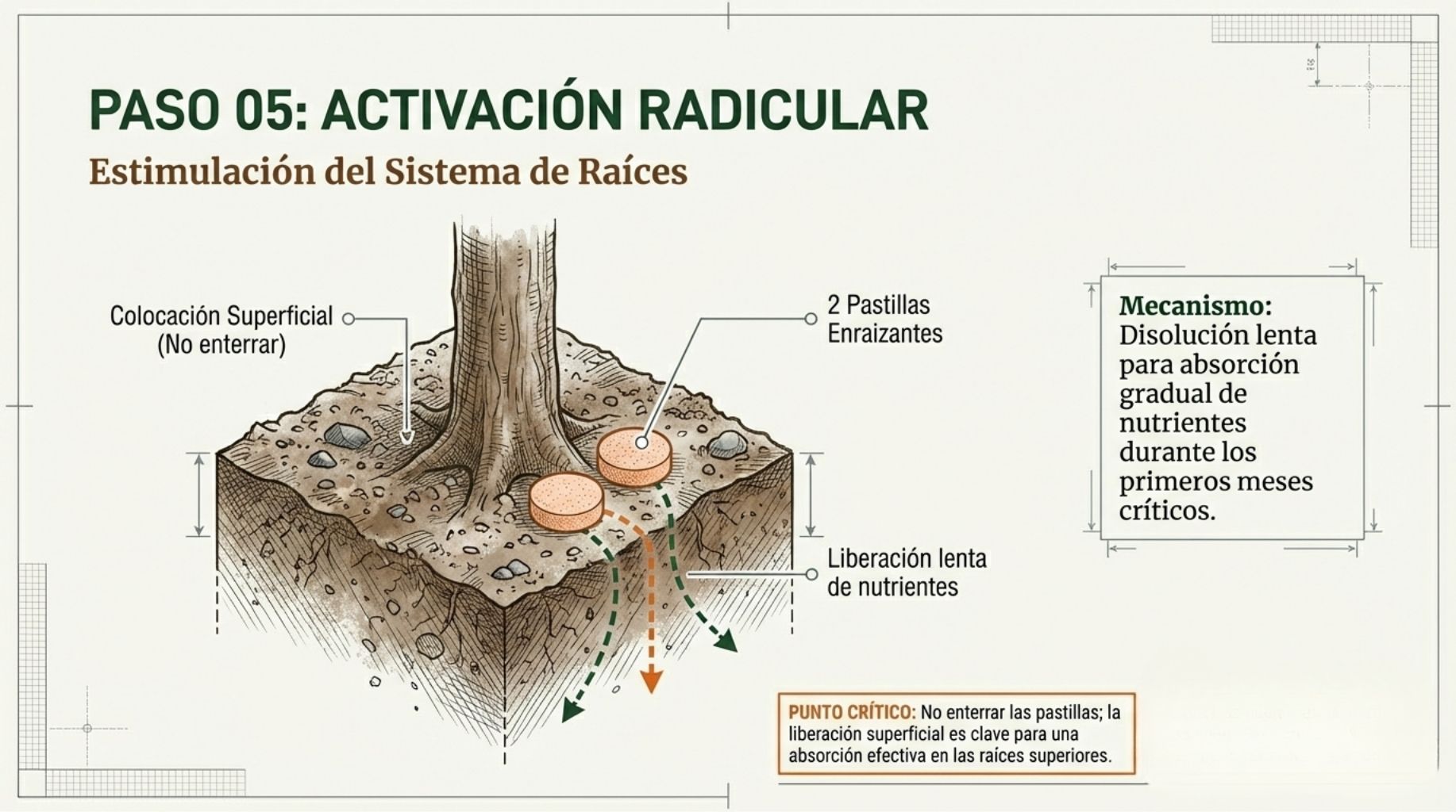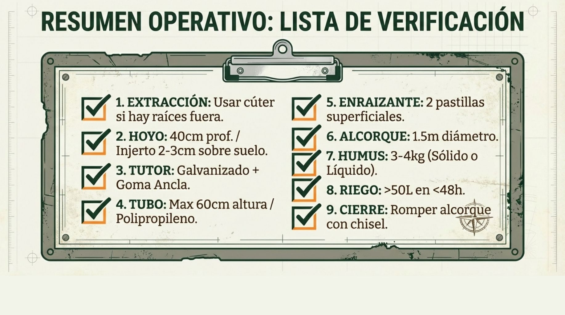 7. Plantación técnica: Los 9 pasos son críticos. Cada detalle importa.