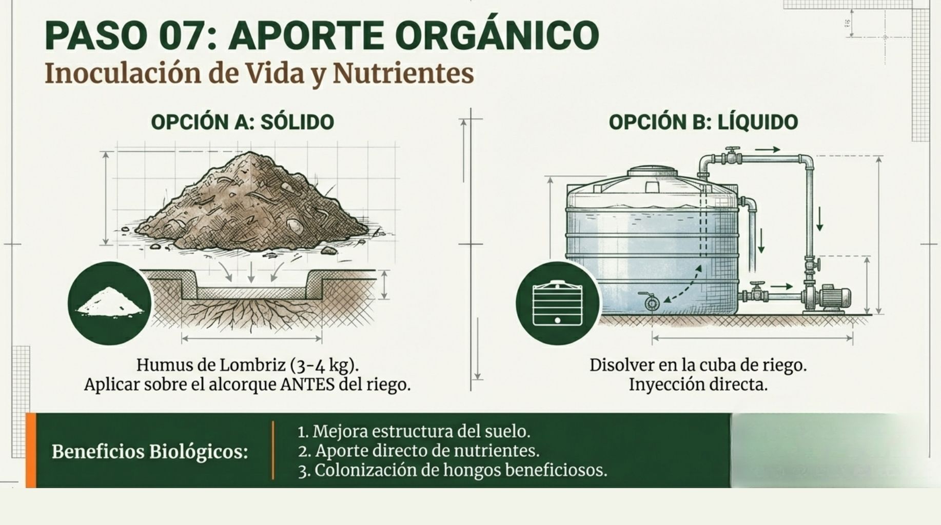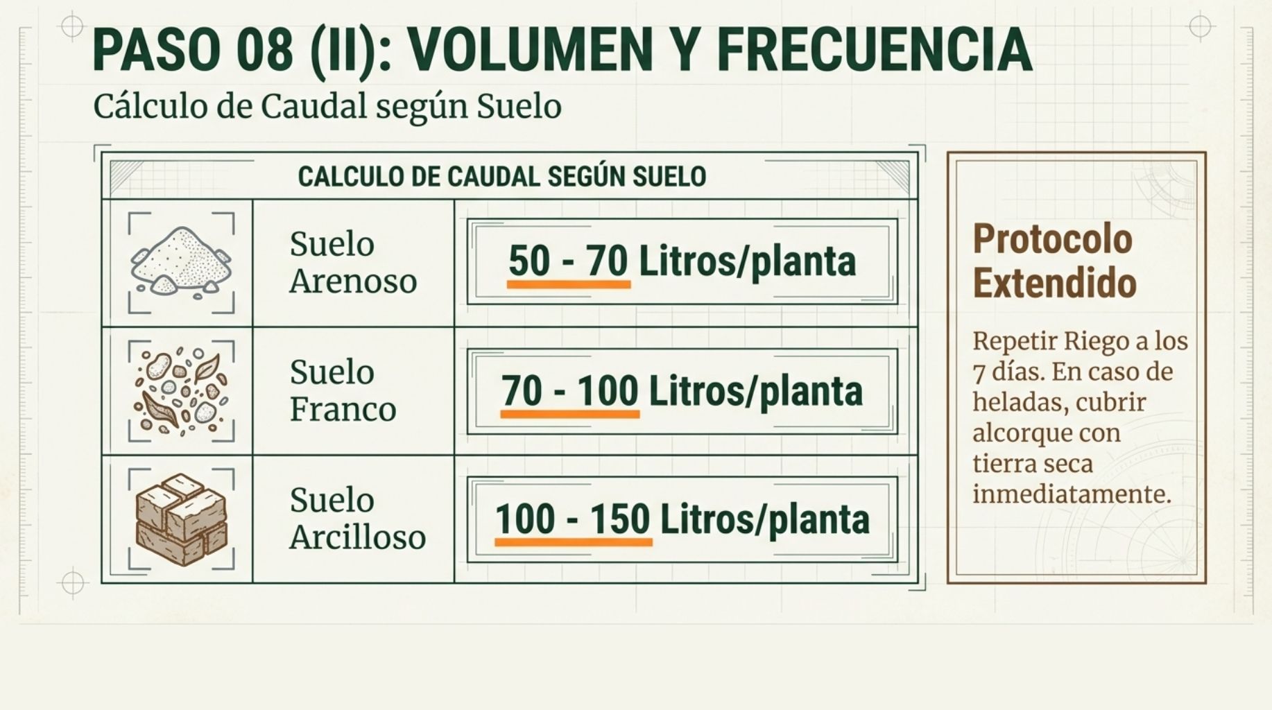 4. Marco de plantación: Calcula según tu disponibilidad de agua. No es una decisión arbitraria.