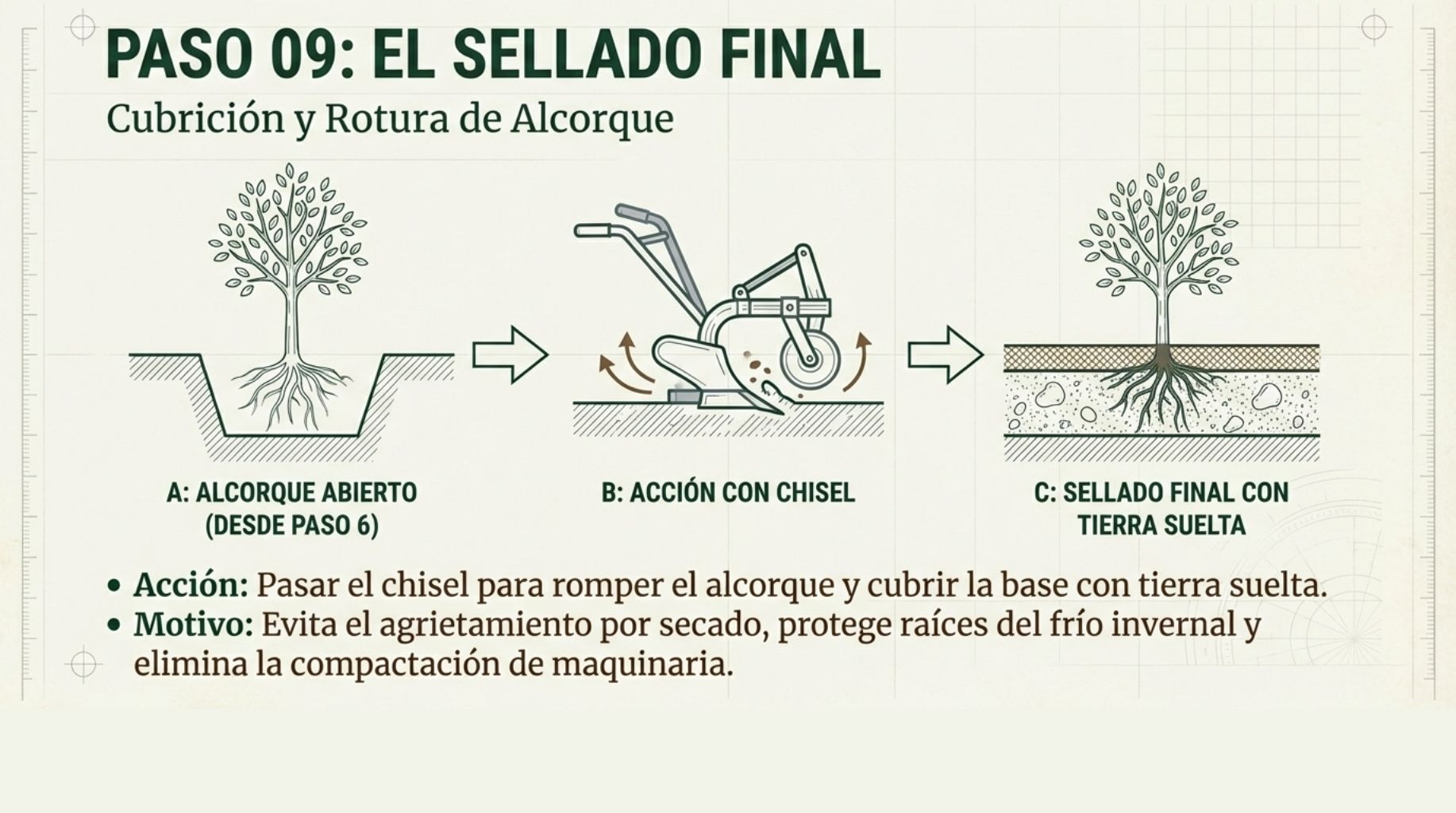 Durante: Plantación técnica correcta. Los 9 pasos son tu garantía de éxito.