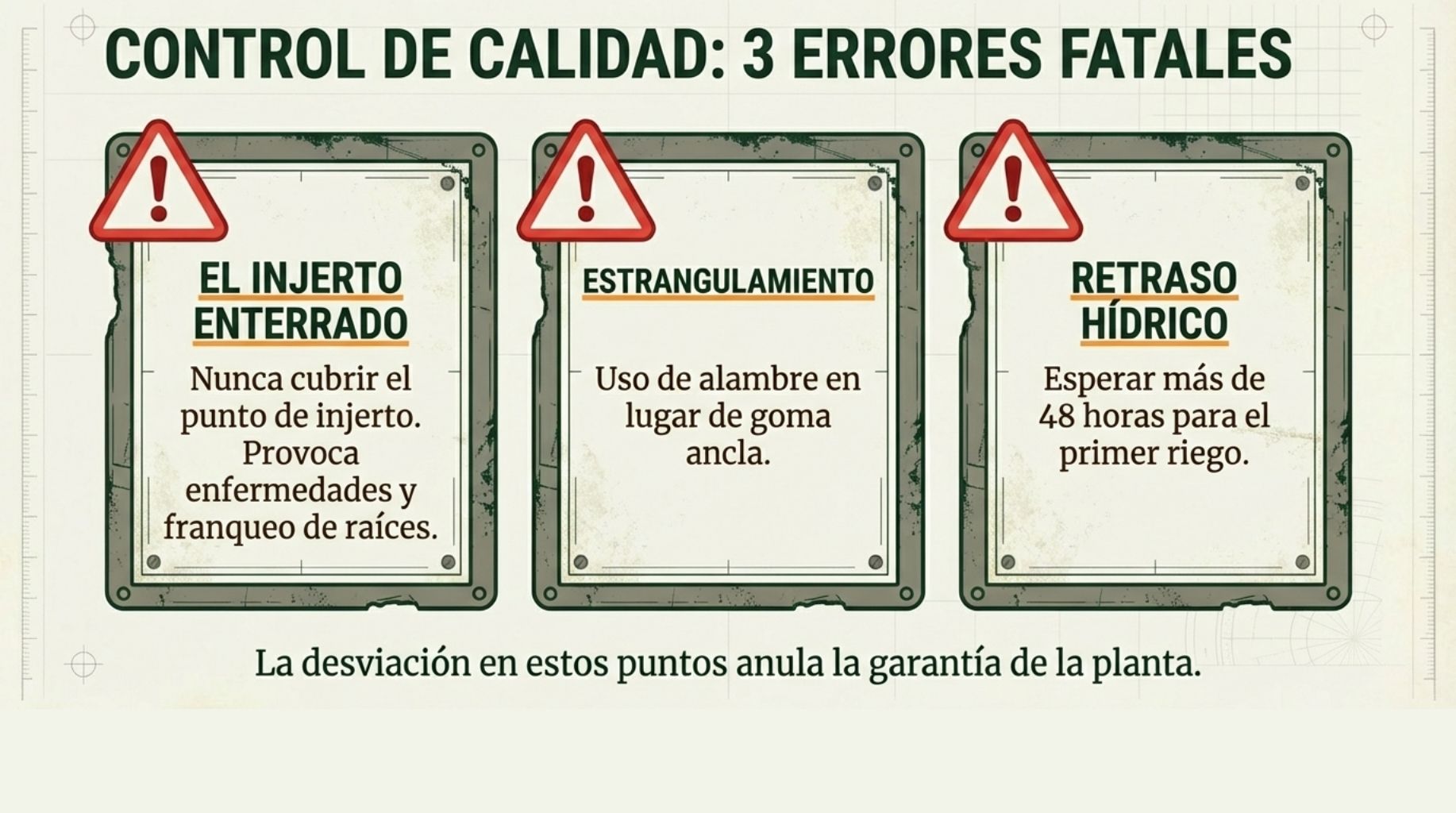 Injerto en campo: El vivero injerta la planta directamente en el terreno. Más barato, pero menos control de calidad.
